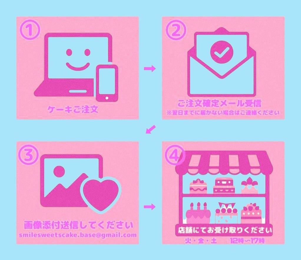 (※送って頂いた写真をそのまま使用しますので、なるべくケーキに合った服装でのお写真を送信してください。)