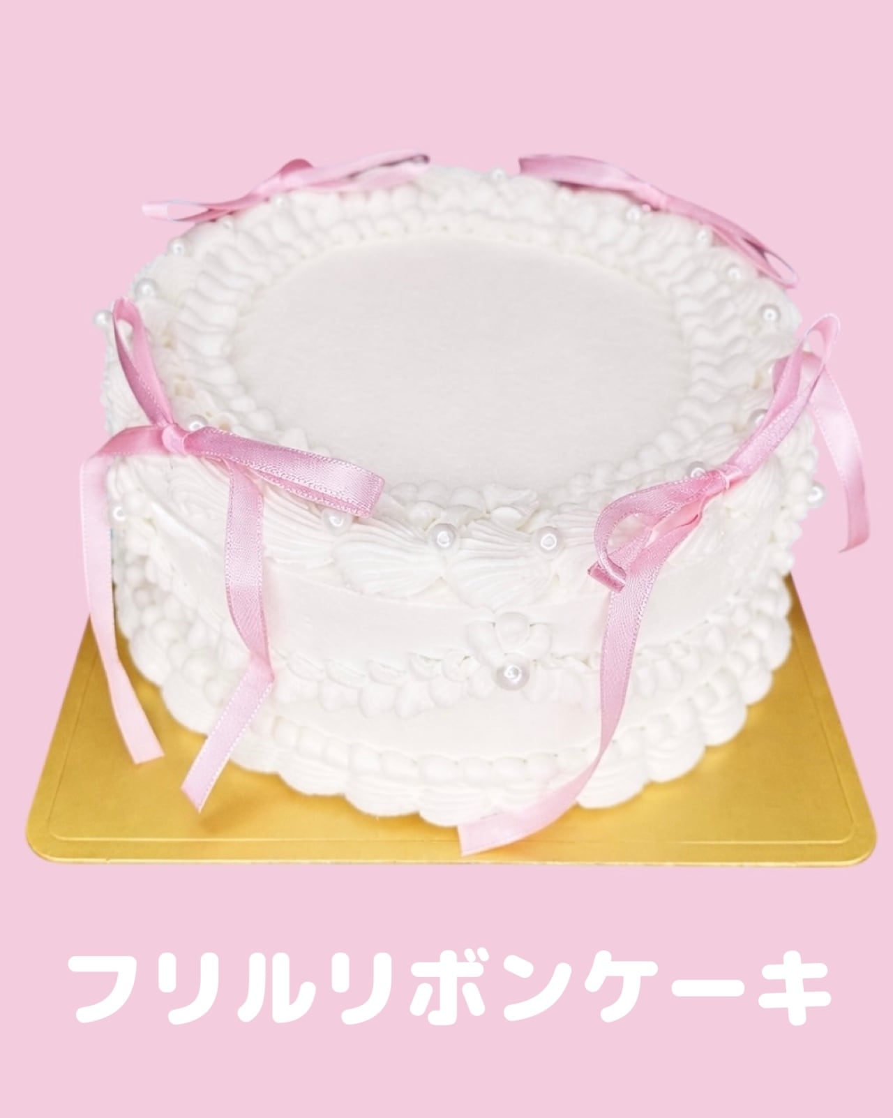 きらめくフリルとパールのケーキに、愛らしいリボンで飾られたこのケーキは、どんなお祝いの場にもぴったりの魅力を持っています♡